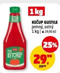 | KEČUP JEMNÝ, OSTRÝ GUSTILE 1 kg | Penny Market | 43,33 Kč | 29,90 Kč | -31% | 11 února 2026 | 17 února 2026 | |