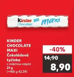 | KINDER Chocolate Maxi Čokoládová tyčinka 21 g | Kaufland | 14,90 Kč | 8,90 Kč | -40% | 04 února 2026 | 10 února 2026 | |