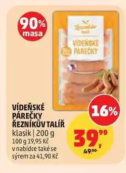 | VÍDEŇSKÉ PÁREČKY ŘEZNÍKŮV TALÍŘ klasik 200 g | Penny Market | 49,88 Kč | 39,90 Kč | -20% | 22 dubna 2026 | 28 dubna 2026 | |