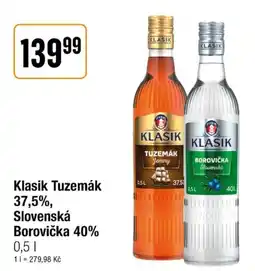 | Klasik Tuzemák Jemný 37,5%, Borovička Slovenská 40% 0.5L | TEMPO | 169,90 Kč | 129,90 Kč | 40,00 Kč Slevu | 10 dubna 2024 | 23 dubna 2024 | |