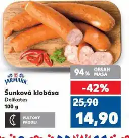 | Šunková klobása Delikates 100 g | Kaufland | 25,90 Kč | 14,90 Kč | -42% | 22 října 2025 | 27 října 2025 | |