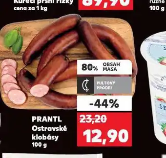| Prantl ostravské klobásy | Kaufland | 23,90 Kč | 15,90 Kč | 8,00 Kč Slevu | 26 července 2023 | 01 srpna 2023 | |