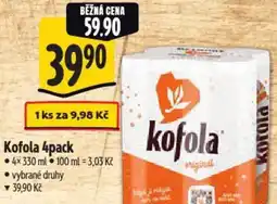 | Kofola 4pack 4 x 330 ml | Albert | 59,90 Kč | 39,90 Kč | 20,00 Kč Slevu | 04 března 2026 | 10 března 2026 | |