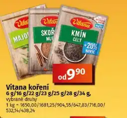 | Vitana koření 20 g/23g/ 25g/28 g | COOP TIP | 17,90 Kč | 12 března 2025 | 25 března 2025 | |||