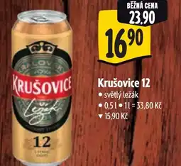 | Krušovice 12, 0.5 l, plech | Tesco | 17,90 Kč | 03 prosince 2025 | 09 prosince 2025 |