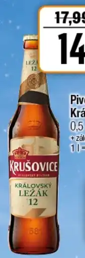 | Pivo Krušovice Královský ležák 12 0.5 L | TEMPO | 22,99 Kč | 16,99 Kč | 6,00 Kč Slevu | 02 ledna 2026 | 13 ledna 2026 | |