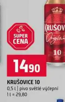 | KRUŠOVICE Origina 10 0,5l pivo světlé výčepní 0.5L | Terno | 14,90 Kč | 04 března 2026 | 10 března 2026 | |||