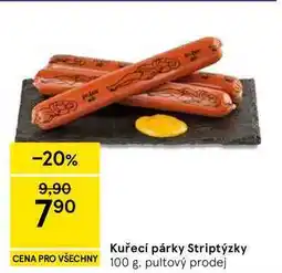 | Kuřecí párky striptýzky | Tesco | 9,90 Kč | 7,90 Kč | 2,00 Kč Slevu | 27 prosince 2025 | 31 prosince 2025 | |