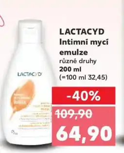 | LACTACYD Intimní mycí emulze 200 ml | Kaufland | 109,90 Kč | 74,90 Kč | -31% | 29 října 2025 | 04 listopadu 2025 | |