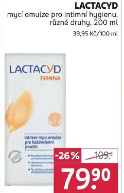 | 2 | LACTACYD mycí emulze pro intimní hygienu 200 ml | Rossmann | 109,00 Kč | 79,90 Kč | -26% | 17 prosince 2025 | 30 prosince 2025 | Zobrazit nabídku | |