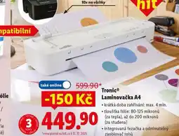 | Tronic® Laminovačka A3 | Lidl | 799,90 Kč | 549,90 Kč | -250 kc | 17 listopadu 2025 | 30 listopadu 2025 | |