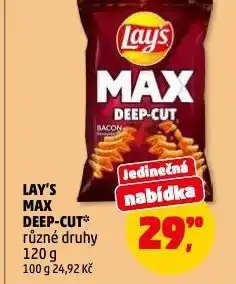 | CHIPSY LAYS MAX různé druhy, 120 g | Penny Market | 29,90 Kč | 28 srpna 2025 | 03 září 2025 | |||