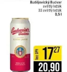 | Budějovický Budvar světlý ležák 33 světlý ležák 0.5 L | Jip | 17,27 Kč | 22 dubna 2026 | 28 dubna 2026 | |||