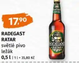 | RADEGAST RATAR 0,5 L pivo světlý ležák | Trefa | 16,90 Kč | 15 října 2025 | 21 října 2025 | |||