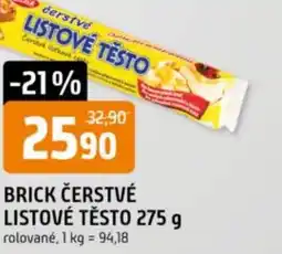 | Brick Čerstvé listové těsto 275g 275 g | Trefa | 32,78 Kč | 25,90 Kč | -21% | 18 února 2026 | 24 února 2026 | |
