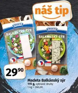 | Madeta Balkánský sýr 115 g | COOP TIP | 29,90 Kč | 10 prosince 2025 | 31 prosince 2025 |