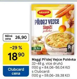 | Maggi Přidej Vejce Polévka, 32-48 g, více druhů 32 - 48 g | Tesco | 26,90 Kč | 29 dubna 2026 | 05 května 2026 | |||