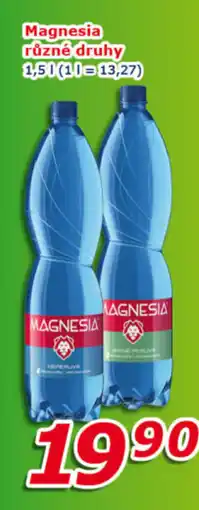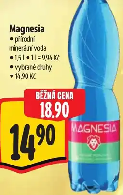 | Magnesia přírodní minerální voda 1,5l, vybrané druhy 1.5l 1.5 L | Albert | 14,90 Kč | -21% | 14 ledna 2026 | 20 ledna 2026 | ||