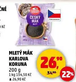 | Mletý mák karlova koruna 200 g | Penny Market | 36,90 Kč | 26,90 Kč | 27% | 04 prosince 2025 | 10 prosince 2025 | |