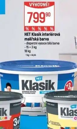 | 1 | HET Klasik interiérová malířská barva 15+3 kg | Globus | 799,90 Kč | 04 února 2026 | 02 března 2026 | Zobrazit nabídku | |||