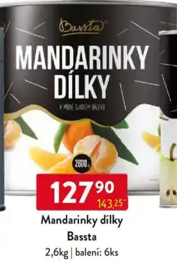 | BASSTA Mandarinky dílky 2.6 kg | Qanto | 144,90 Kč | 01 listopadu 2024 | 30 listopadu 2024 | |||