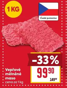 | Mělněné maso vepřové 1 kg | Billa | 149,90 Kč | 99,90 Kč | -33% | 12 března 2025 | 18 března 2025 | |