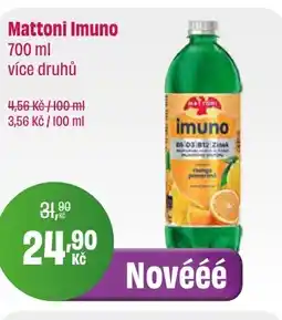 | Mattoni Imuno 700 ml | BonVeno | 31,90 Kč | 24,90 Kč | -21% | 01 dubna 2026 | 21 dubna 2026 | |