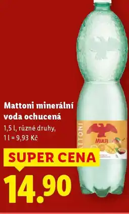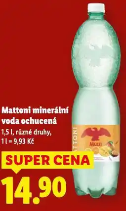 | Mattoni ochucená minerální voda 1,5l, vybrané druhy 1.5l | Lidl | 14,90 Kč | 24 srpna 2023 | 27 srpna 2023 | |||
