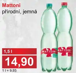 | MATTONI přírodní, neperlivá, jemná 1.5 L | PLUS JIP | 14,90 Kč | 18 června 2025 | 01 července 2025 | |||