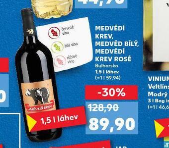 | MEDVĚDÍ KREV, MEDVĚD BÍLÝ, MEDVĚDÍ KREV ROSÉ 1.5L | Kaufland | 139,90 Kč | 99,90 Kč | 40,00 Kč Slevu | 07 května 2024 | 14 května 2024 | |