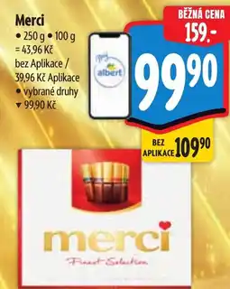 | 4 | Merci 250 g | Albert | 159,00 Kč | 99,90 Kč | 59,10 Kč Slevu | 21 ledna 2026 | 27 ledna 2026 | Zobrazit nabídku | |