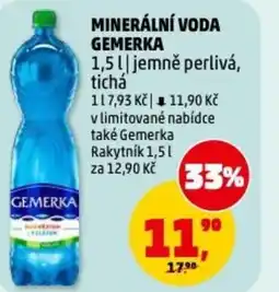 | 2 | Minerální voda Gemerka 1.5 L | Penny Market | 17,90 Kč | 11,90 Kč | 6,00 Kč Slevu | 04 března 2026 | 10 března 2026 | Zobrazit nabídku | |