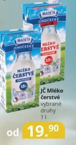 | Madeta JČ Mléko čerstvé polotučné, plnotučné 1,5%, 3,5% 1 L | Potraviny CZ | | 19,90 Kč | | 14 ledna 2026 | 26 ledna 2026 |