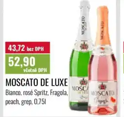| Moscato De luxe rosé alkoholický nápoj sycený 0.75L | Terno | 56,90 Kč | 25 února 2026 | 03 března 2026 | |||