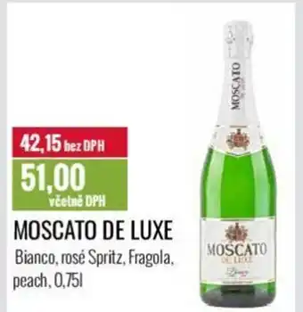 | MOSCATO DE LUXE Bianco, rosé Spritz, Fragola, MOSCOSCATO peach, grep 0.75 L | Ratio | 43,72 Kč | 01 srpna 2025 | 31 srpna 2025 | |||