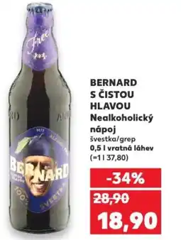| 1 | BERNARD S ČISTOU HLAVOU Nealkoholický nápoj 0.5 L | Kaufland | 28,90 Kč | 18,90 Kč | -34% | 29 dubna 2026 | 05 května 2026 | Zobrazit nabídku | |