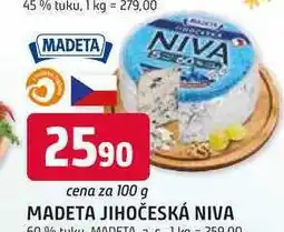 | MADETA Jihočeská niva 100 g | Trefa | | 22,90 Kč | | 18 prosince 2024 | 31 prosince 2024 |