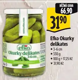 | Efko Okurky delikates 330 g | Albert | 66,90 Kč | 31,90 Kč | 35,00 Kč Slevu | 14 ledna 2026 | 20 ledna 2026 | |