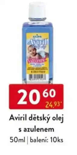 | Aviril dětský olej s azulenem 50 ml | Qanto | | 21,48 Kč | | 01 ledna 2026 | 31 ledna 2026 |