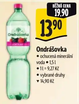 | Ondrášovka ochucená minerální voda 1,5l, vybrané druhy 1.5l 1.5 L | Albert | 19,86 Kč | 13,90 Kč | -30% | 25 února 2026 | 03 března 2026 | |