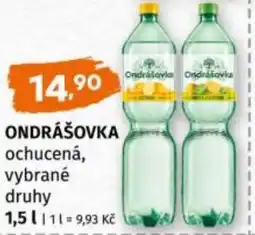 | Ondrášovka ochucená minerální voda 1,5l, vybrané druhy 1.5l | Trefa | | 14,90 Kč | | 06 srpna 2025 | 12 srpna 2025 |