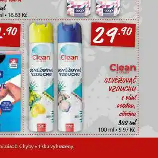 | Clean & clean osvěžovač vzduchu | Terno | 35,90 Kč | 29,90 Kč | 6,00 Kč Slevu | 04 ledna 2023 | 10 ledna 2023 | |