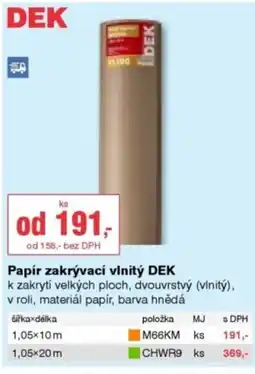 | Papír zakrývací vlnitý DEK | DEK | 191,00 Kč | 03 března 2026 | 29 března 2026 |