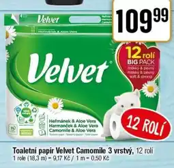 | Toaletní papír Velvet Camomile 12 roli | TEMPO | 129,99 Kč | 99,99 Kč | 30,00 Kč Slevu | 30 července 2025 | 12 srpna 2025 | |