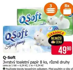 | Q-soft 3-vrstvý toaletní papír, 8 rolí, různé druhy | Teta | 59,90 Kč | 13 října 2022 | 23 října 2022 | |||