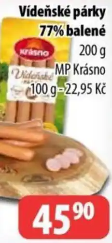 | Vídeňské párky 77% balené 200 g | Partner Maloobchodní síť | 45,90 Kč | 18 června 2025 | 29 června 2025 | |||
