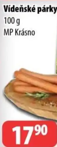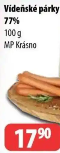 | Vídeňské párky 77% 100 g | Partner Maloobchodní síť | 17,90 Kč | 23 dubna 2025 | 04 května 2025 | |||