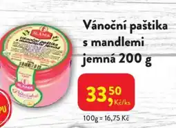| Vánoční paštika s mandlemi jemná 200 g | MP Krásno | 33,50 Kč | 22 prosince 2025 | 31 prosince 2025 | |||