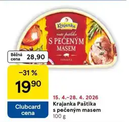 | Krajanka Paštika s pečeným masem | Tesco | 19,90 Kč | 15 dubna 2026 | 21 dubna 2026 | |||