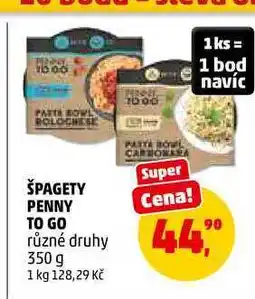 | 3 | ŠPAGETY PENNY TO GO 350 g | Penny Market | 44,90 Kč | 15 dubna 2026 | 21 dubna 2026 | Zobrazit nabídku | |||